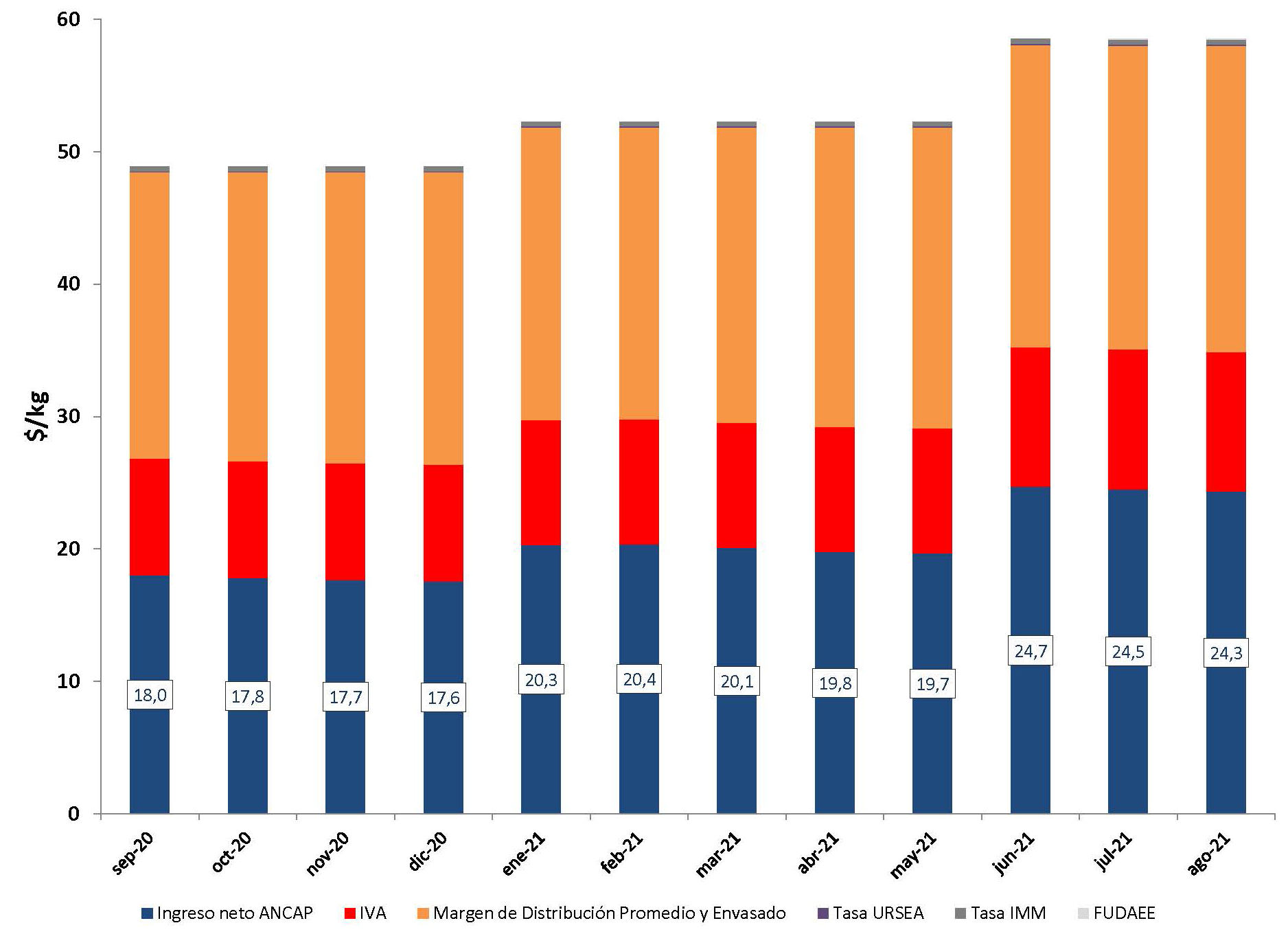 Hasta junio 2021, las tarifas eran propuestas por ANCAP y fijadas por Poder Ejecutivo. A la fecha se mantiene mismo régimen para GLP.