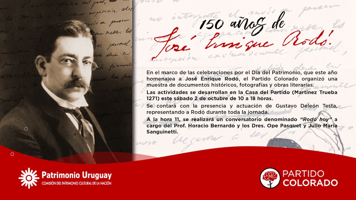 En el marco de las celebraciones por el Día del Patrimonio, el Partido Colorado organiza una muestra de documentos históricos, fotografías y obras literarias de Rodó.